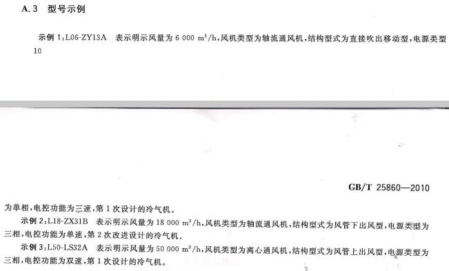 冷風機型號編制命名規則(國標)
