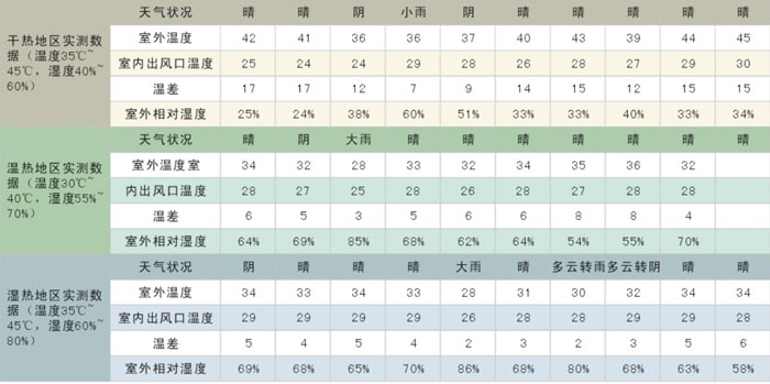 冷風機降溫效果參考表